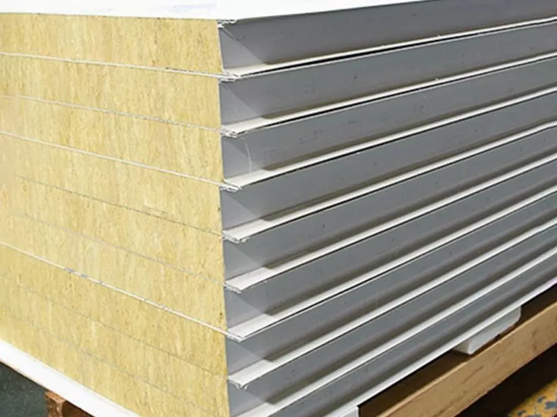 سینڈوچ پینل کا بنیادی حصہ Rockwool پر مشتمل ہے، ایک معدنی فائبر موصلیت کا مواد جو اپنی بہترین تھرمل اور صوتی موصلیت کی خصوصیات کے لیے جانا جاتا ہے۔ اس کور کے ارد گرد دھاتی چادروں کی دو تہیں ہیں، عام طور پر سٹیل یا ایلومینیم، جو ساختی سختی فراہم کرتی ہیں اور موصلیت کو بیرونی عناصر سے بچاتی ہیں۔